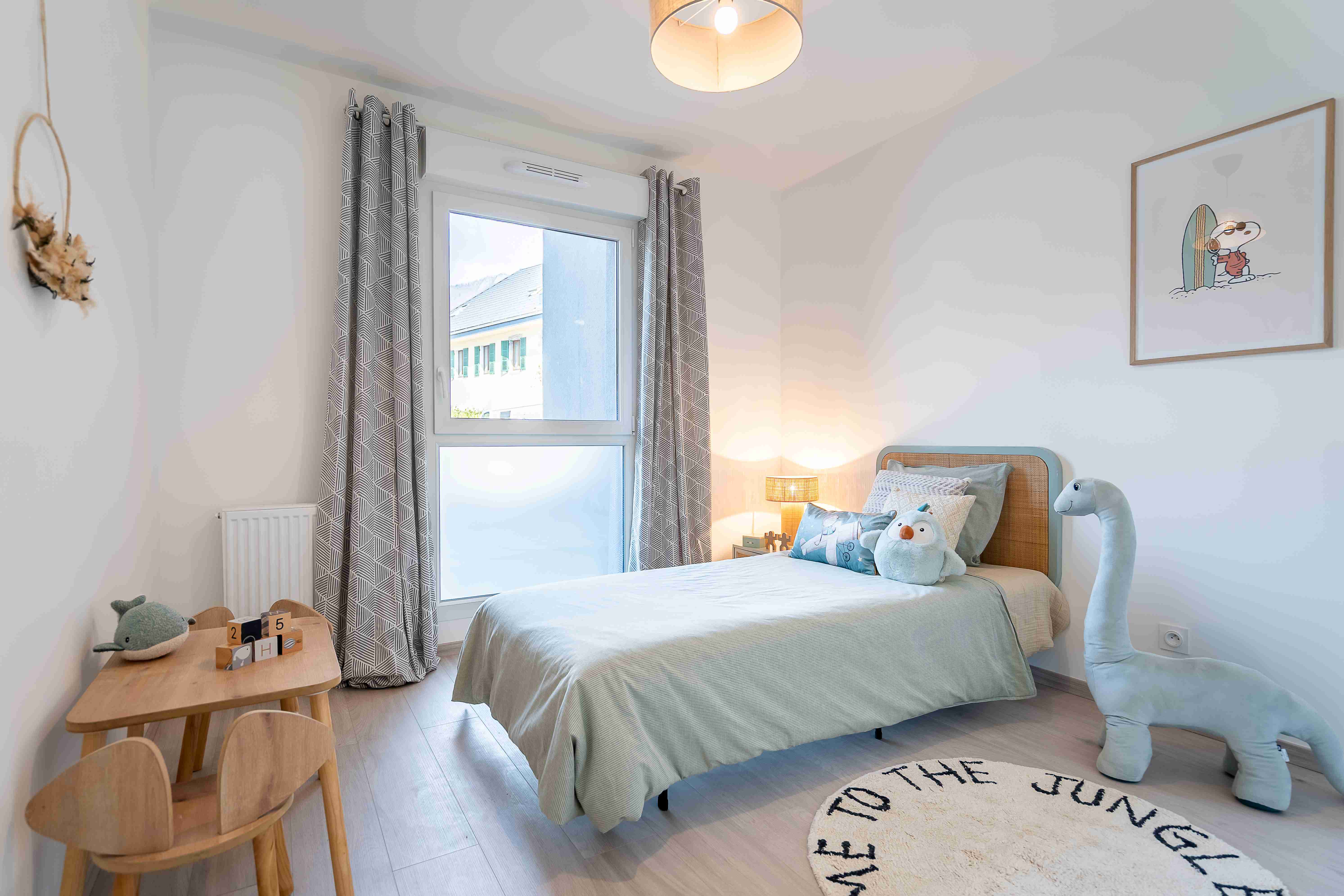 L’appartement propose deux chambres confortables (11.75 et 10.52 m²) ainsi qu’une salle de bains contemporaine et des WC séparés, offrant un véritable confort au quotidien. La qualité de construction de la résidence garantit une excellente performance énergétique et un environnement calme et soigné.