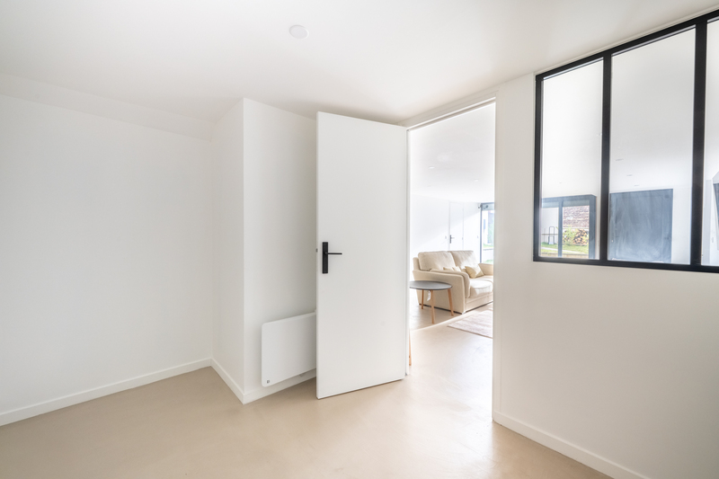 Le rez-de-chaussée dévoile un séjour lumineux avec accès direct au jardin, une chambre de plain-pied idéale pour télétravail ou espace invité, ainsi qu'une salle d'eau avec WC.