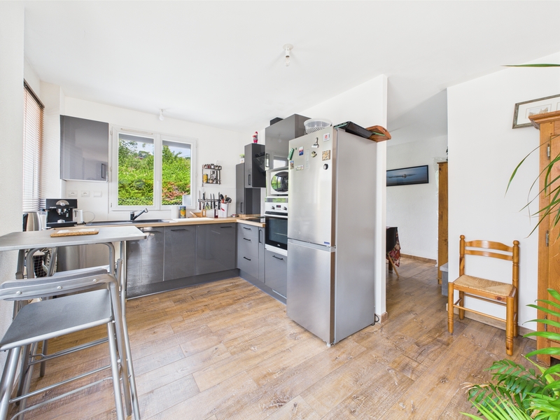 La maison a été rénovée et développe une surface habitable de 60,90 m² (loi Carrez) et une surface au sol de 77,67 m², implantée sur une parcelle de terrain de 148 m². Elle se compose d'une cuisine équipée ouverte sur la pièce de vie avec accès direct à la terrasse, une salle à manger, deux chambres, 2 toilettes, une salle de douche, un espace buanderie.