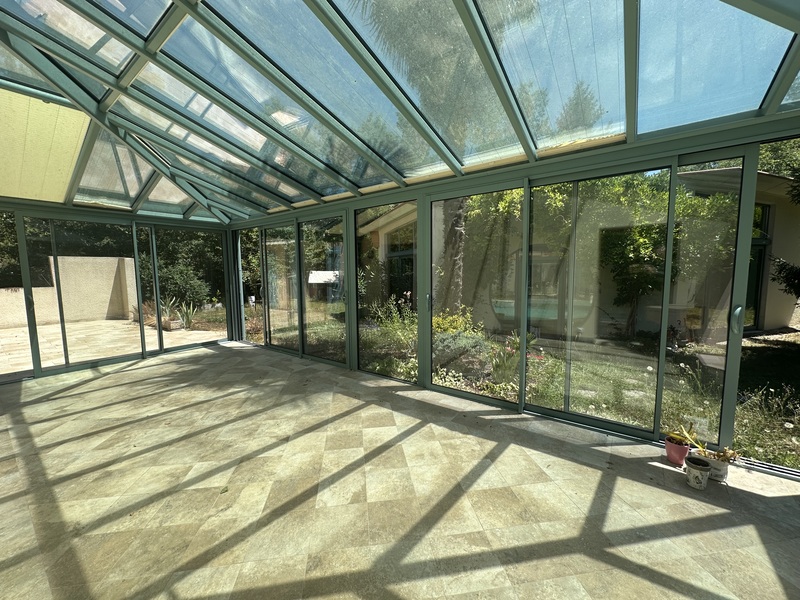 La pièce de vie, VASTE et lumineuse, s’étend sur 60 m² et réunit une entrée élégante, un salon convivial avec une cheminée à insert double foyer, une salle à manger chaleureuse et une cuisine ouverte, entièrement équipée. Une véranda de 28 m² prolonge cet ESPACE, baignée de lumière naturelle, avec un accès direct à la piscine, créant une belle harmonie entre l’intérieur et l’extérieur.