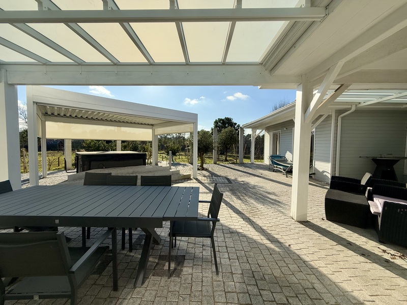 À l’extérieur, le jardin paysager, soigneusement entretenu, est un véritable havre de paix. Un vaste potager riche en fruits, légumes et agrumes séduira les amateurs de nature et d’autonomie. Pour des moments de relaxation, vous profiterez d’une pergola bioclimatique avec spa ainsi que d’une terrasse couverte permettant de profiter des extérieurs en toute saison.