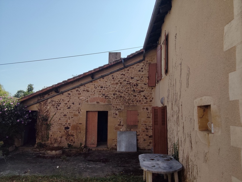 Située dans le bourg de Pressac, cette propriété dispose d'un vaste terrain de plus de 600 m² avec une maison en pierre d'une surface habitable de 169 m² environ.