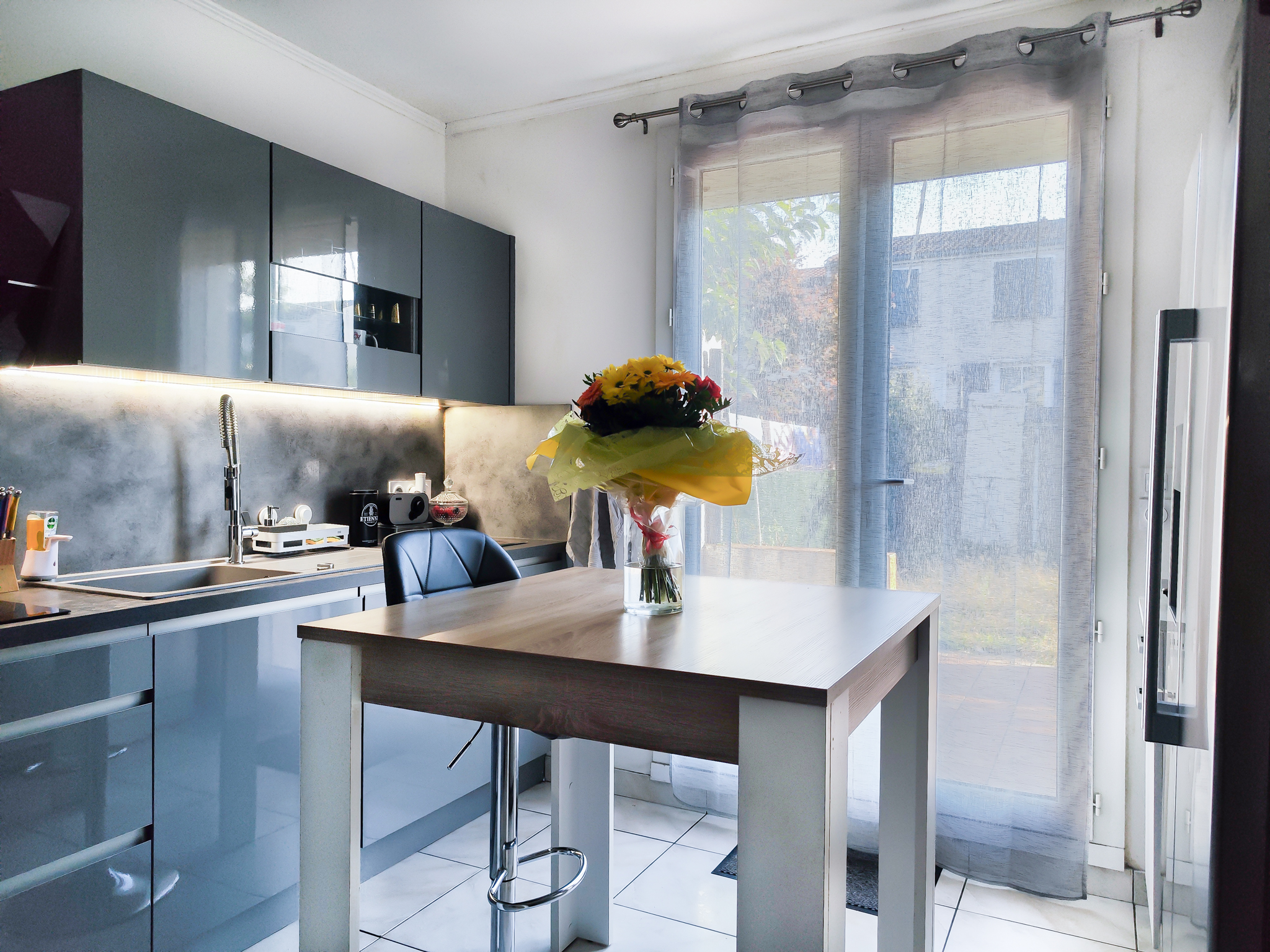 Un garage carrelé, propre et fonctionnel, et un jardin exposé Sud/Ouest, facile d’entretien, complètent l’ensemble.