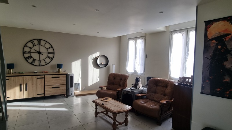 Maison d’habitation entièrement rénovée de 87 m² composé d’une cuisine de 23m² récente et aménagée avec une grande ouverture donnant sur un séjour de 25m² carrelé et très lumineux avec un accès direct sur la cour, et d’un grand wc avec point d’eau.