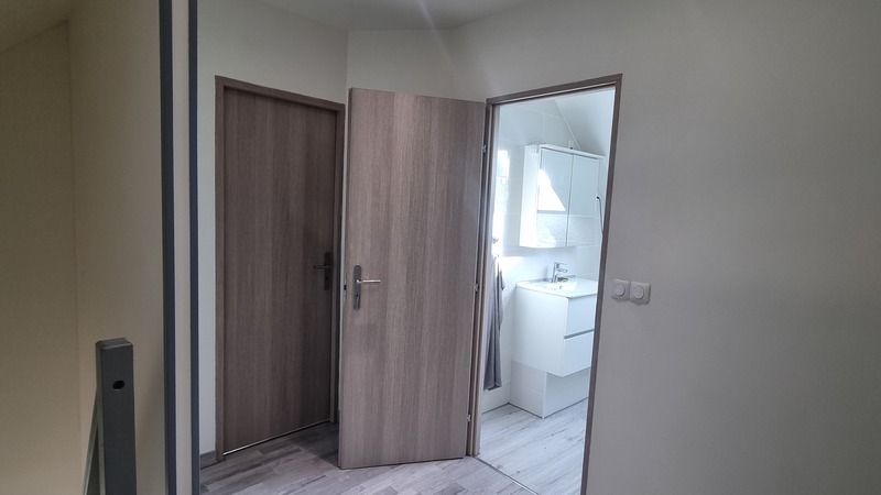 A l’étage, deux grandes chambres 17m² et 11m² et une salle d’eau avec un wc.
