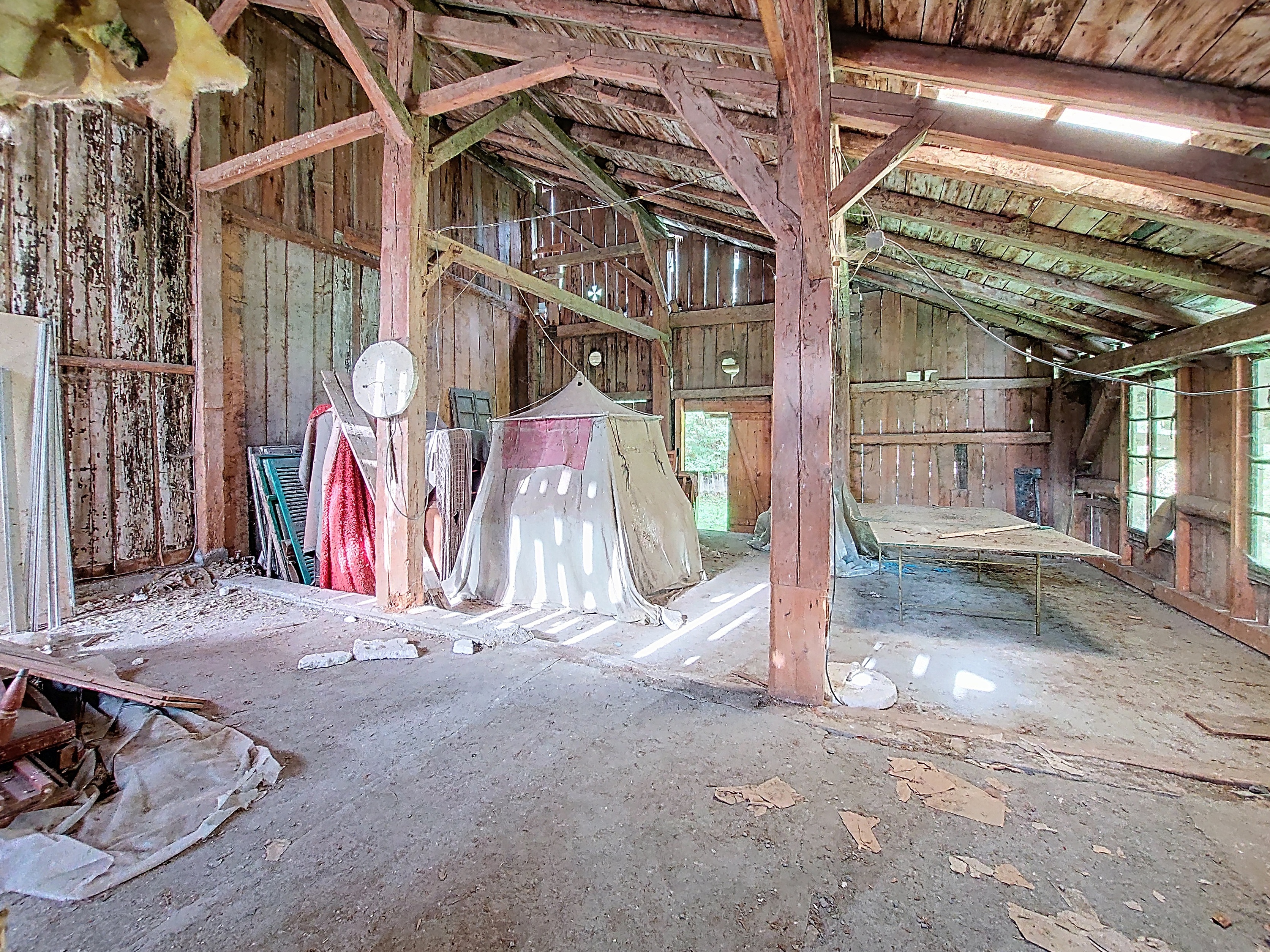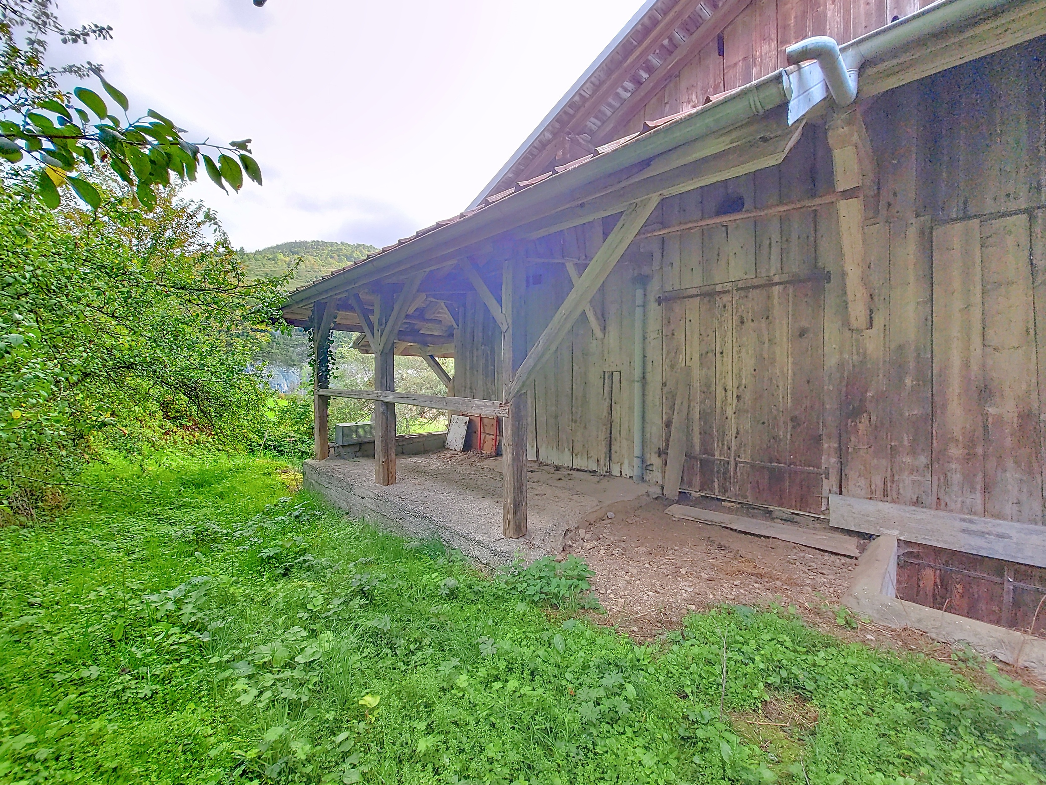 -Une grange avec un accès unique depuis l’extérieur et avec une terrasse couverte sur le devant