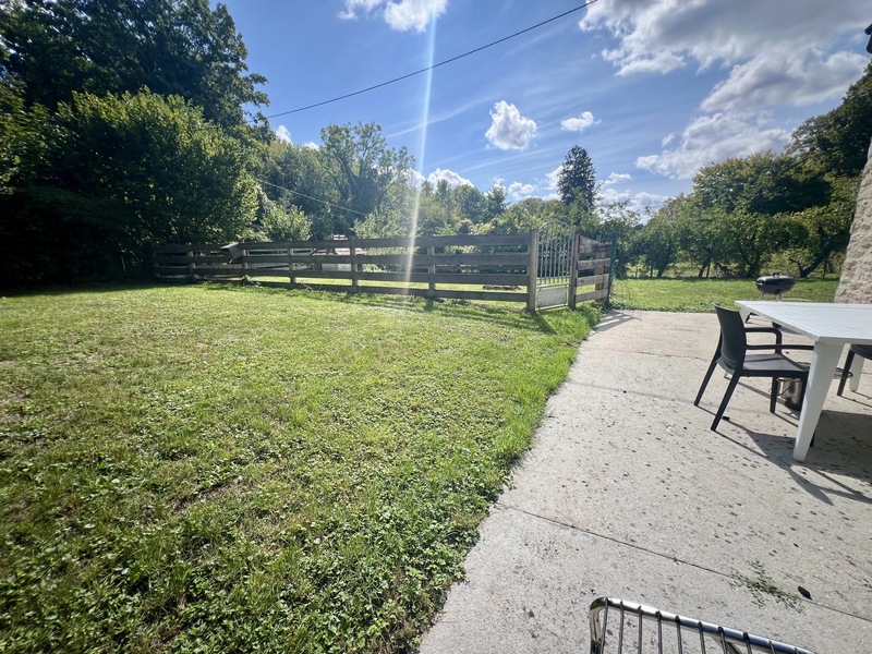 - un jardin arboré et clos de murs en pierre rejointés.