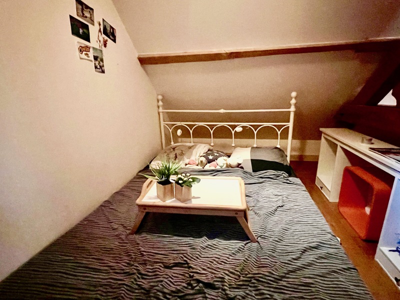- Combles isolés en laine de bois (entre chevrons : 80 mm + au-dessus 180 mm + membrane Vario Isover) (28 m2) avec mezzanine (16 m2 au sol / 5 m2 à +1,80 m) pouvant être une chambre supplémentaire et/ou dressing et/ou un bureau.