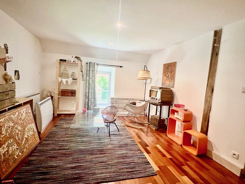 - Au rez-de-chaussée : une entrée (3 m2), un charmant salon dans une ancienne cave voutée (27 m2), une salle à manger / cuisine dînatoire non aménagée et non équipée, ce qui permettra à l'acquéreur potentiel d'installer une cuisine à son goût (29 m2), 1 grande chambre (15,7 m2), 1 petite chambre pour enfant ou un bureau (7 m2), une salle d’eau avec douche et emplacement pour un lave-linge (4 m2), et un wc indépendant (1,3 m2) ;