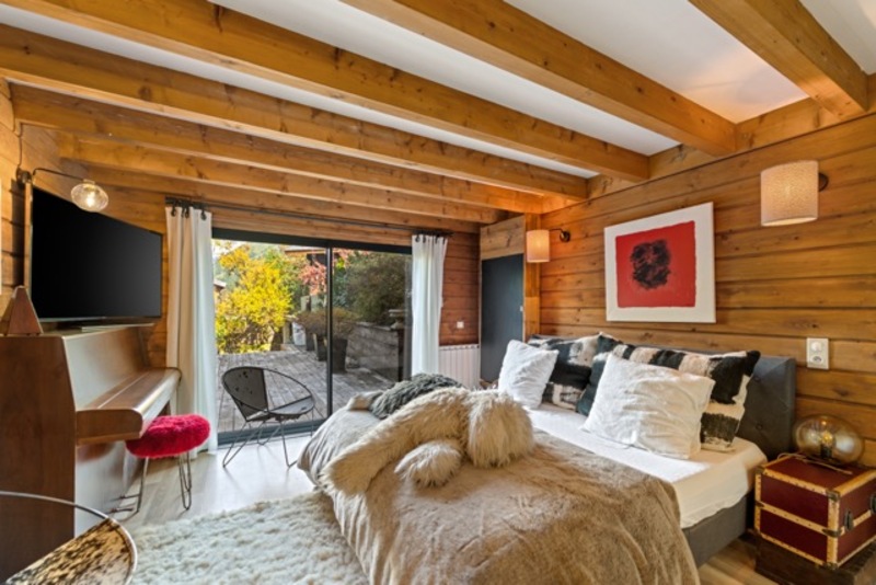 Il offre 5 chambres ensuite, un séjour cathédrale avec cheminée centrale et des vues exceptionnelles sur le Mont-Blanc et le Brévent.
