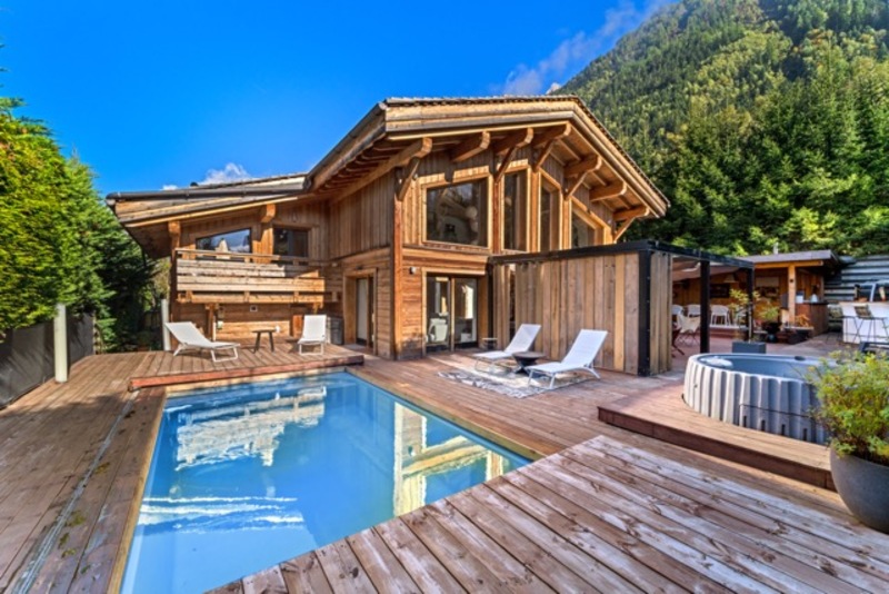 Prestations haut de gamme : piscine chauffée, jacuzzi, cuisine extérieure et salon d’été, mazot savoyard, garage de 30 m² et 2 places de parking extérieures.